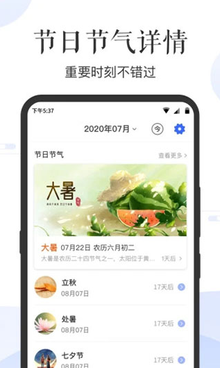 2.生活场景适配:针对不同生活场景提供定制化黄历服务,如“出行指南”(标注当日适合/不适合出行的方位与交通工具选择)、“家居风水”(根据当日五行属性提供简单的家居布置建议)、“健康养生”(结合节气与黄历推荐饮食与作息)。
