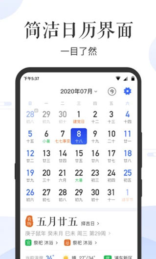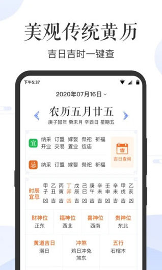 3.功能多样贴合现代生活:在保留传统黄历核心功能的基础上,拓展出多种贴合现代生活需求的实用功能。如天气预报助力日常出行安排,记事提醒方便管理生活琐事,新闻资讯满足用户对时事热点的关注,实现传统与现代的有机结合,全方位服务用户生活。