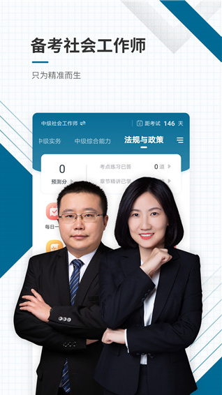 2.智能练习与错题管理:支持按知识点(如社会工作综合能力/实务/法规与政策)、难度(基础/进阶/拔高)智能组卷练习,自动收录错题并生成错题本(标注错误原因/正确答案解析),提供错题重做与薄弱点强化功能。