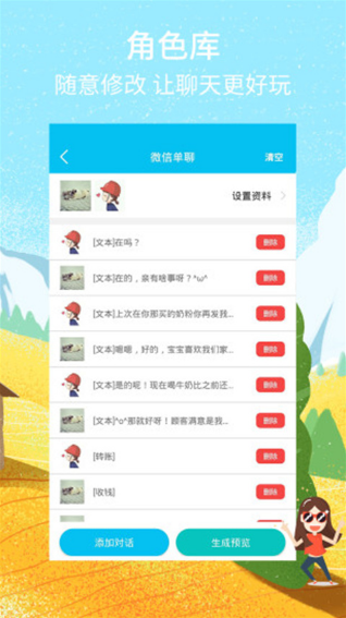2.支持模拟与明星、网红、客户等不同对象的聊天记录,“想聊就聊”;