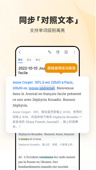 资讯:每日推送来自法语媒体的听力资源,涵盖时事、文化等领域,帮助用户了解法语世界动态;