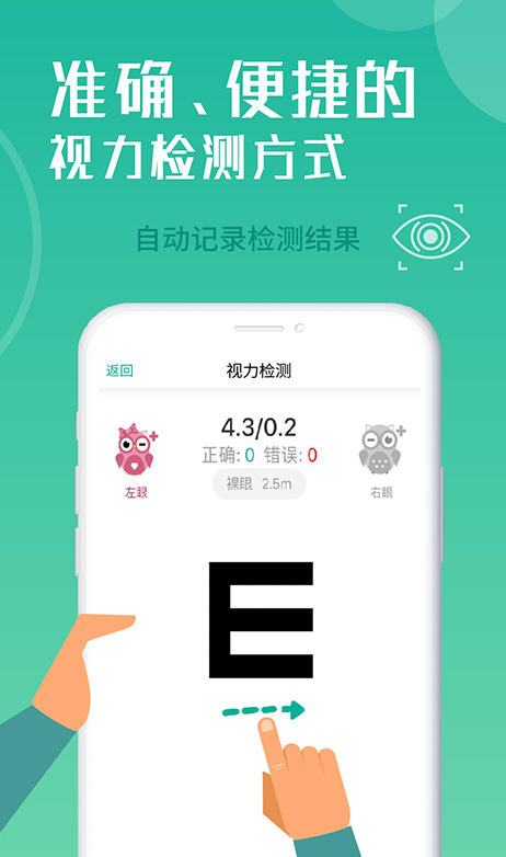 3.趣味互动增强体验:提供“视力挑战模式”(与好友/家人比赛视力得分)、“儿童视力游戏”(通过卡通图案引导儿童完成检测,降低抗拒心理),让视力检测更轻松有趣,提升用户参与度。