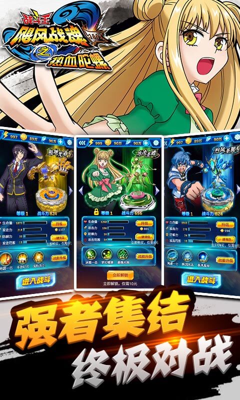 叶枫等四大主角各具特色,拥有专属陀螺与技能;