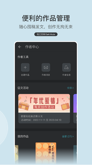 3.全链路版权孵化服务:为原创作者提供出版、影视改编等版权运营支持,已有多部作品成功实现影视化与纸质书出版,同时通过征文大赛发掘青年作者,形成“创作推广变现”的完整生态。